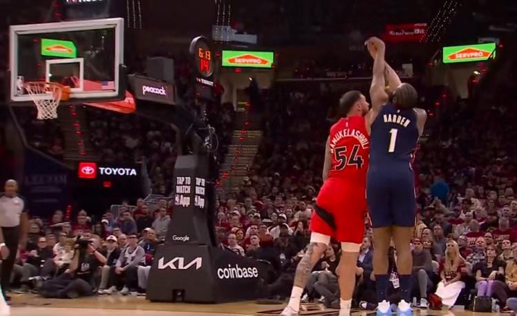 股票配资十大平台 外线杀伤!哈登三分造成犯规 随后3罚2中稳住局势
