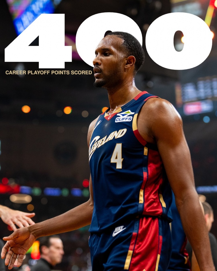 比赛来到第二节,骑士球员小莫布里已砍下10分。至此,小莫布里的生涯季后赛总得分突破400分,来到405。