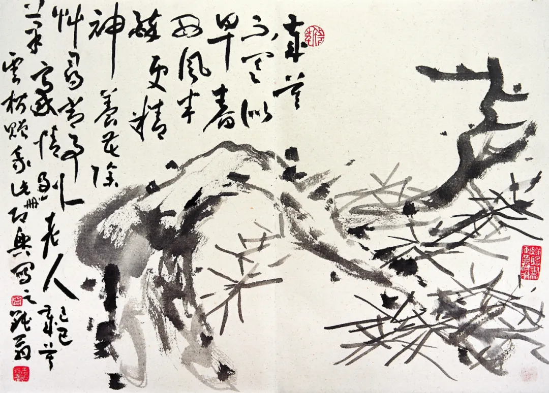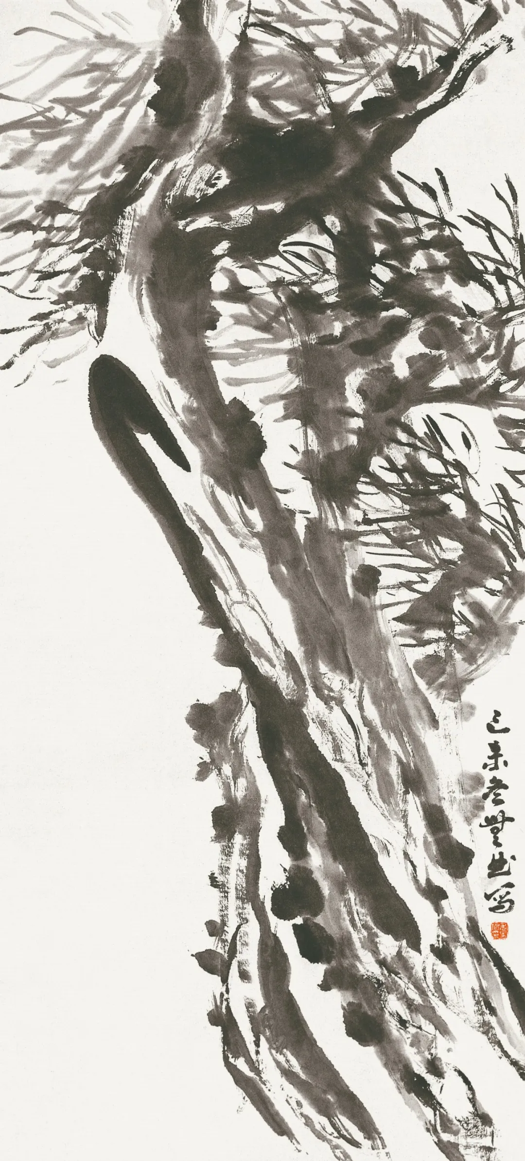 松针呢,也不全是密密麻麻、齐齐整整的。尤无曲画它们,有的稀疏,有的浓密,像是随手那么一甩,却甩出了韵律,甩出了节奏。风一吹,你仿佛都能听见那松针沙沙作响,像是在哼着小曲儿。