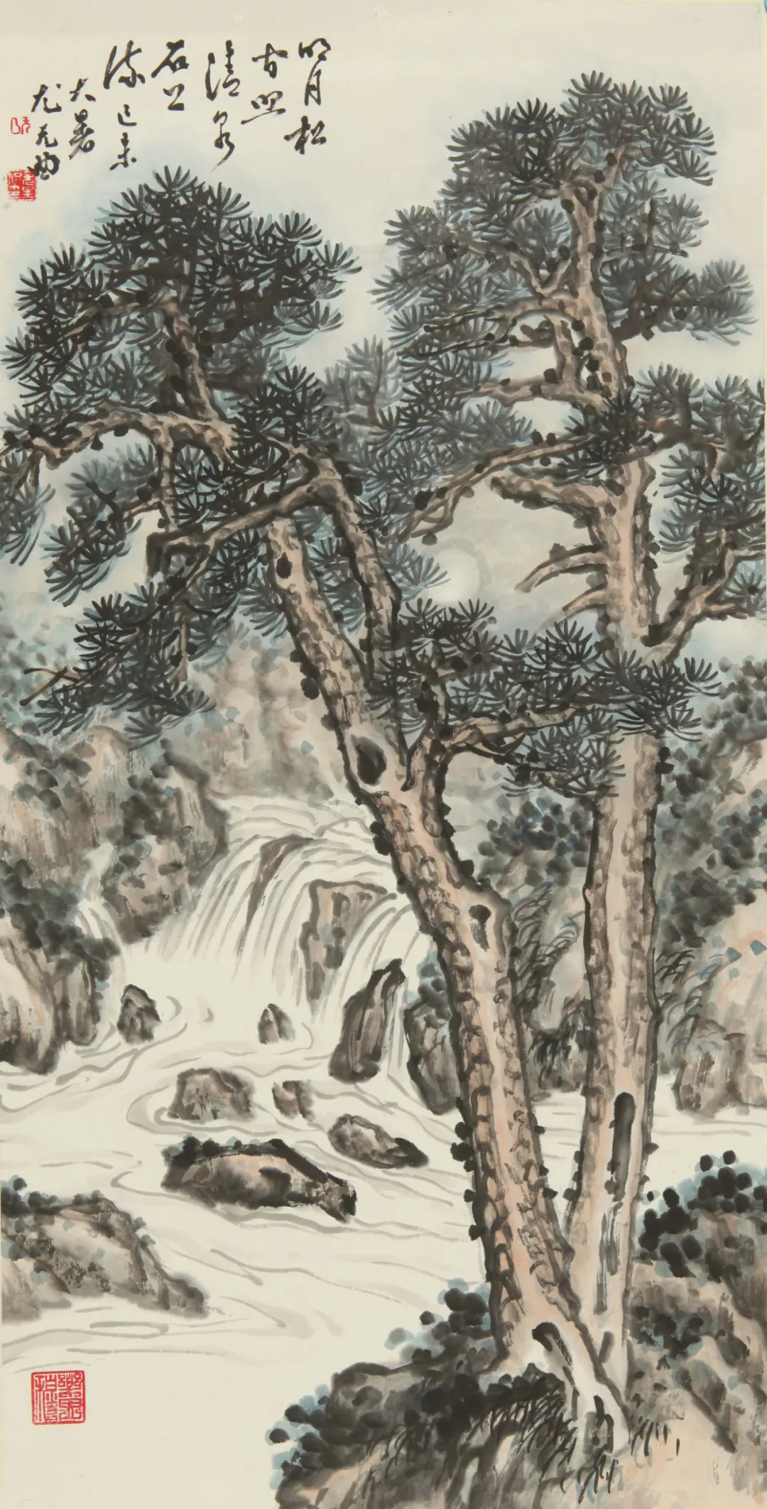 别人画松,要么往威武雄壮上靠,要么奔清雅孤高去,尤无曲倒好,他笔下的松,透着一股子“接地气儿的仙气儿”。